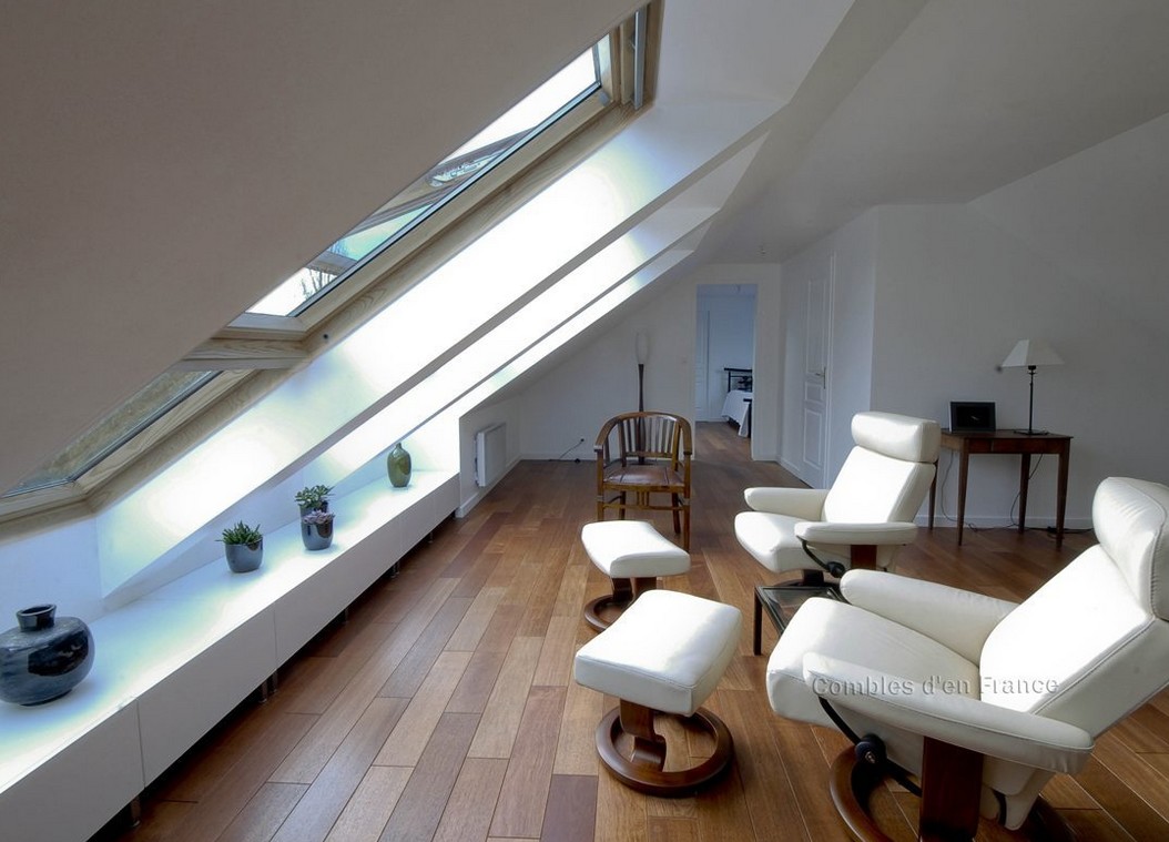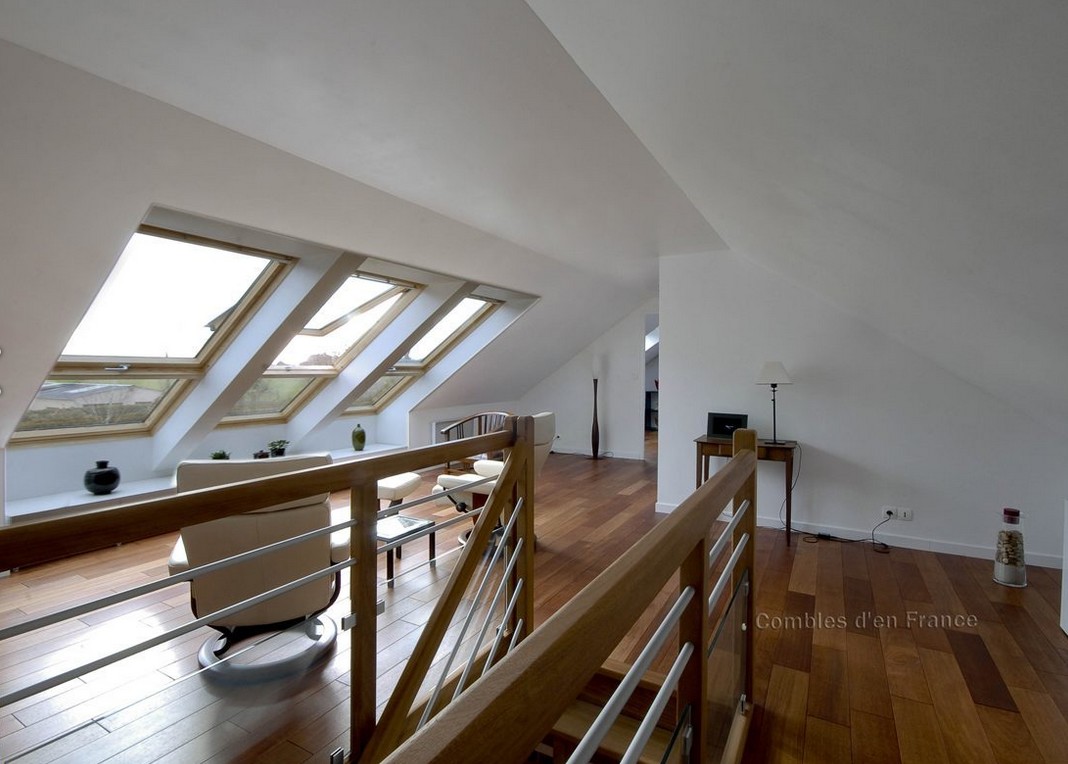 Création d’un espace détente sur le palier d’un comble aménagé.