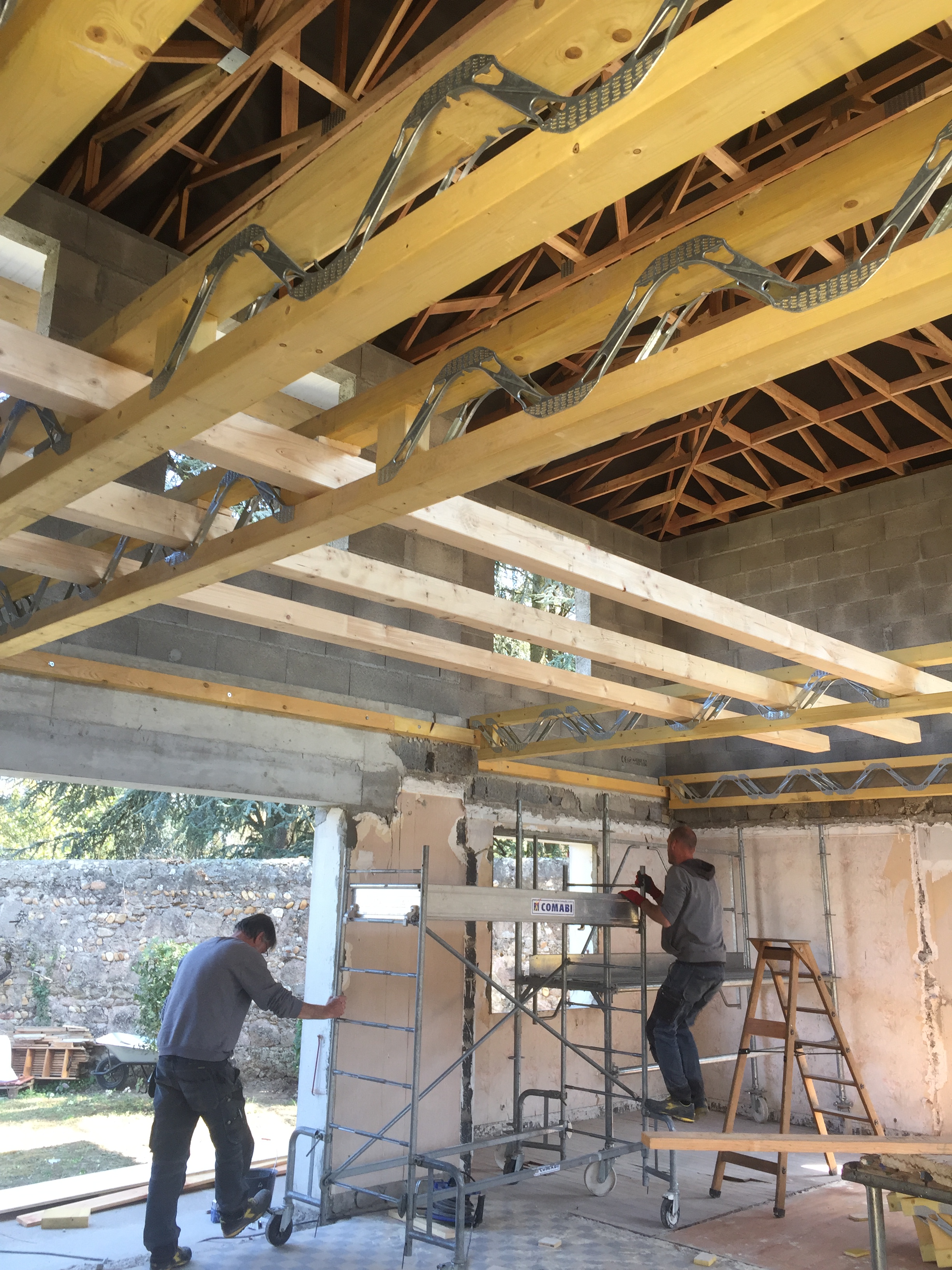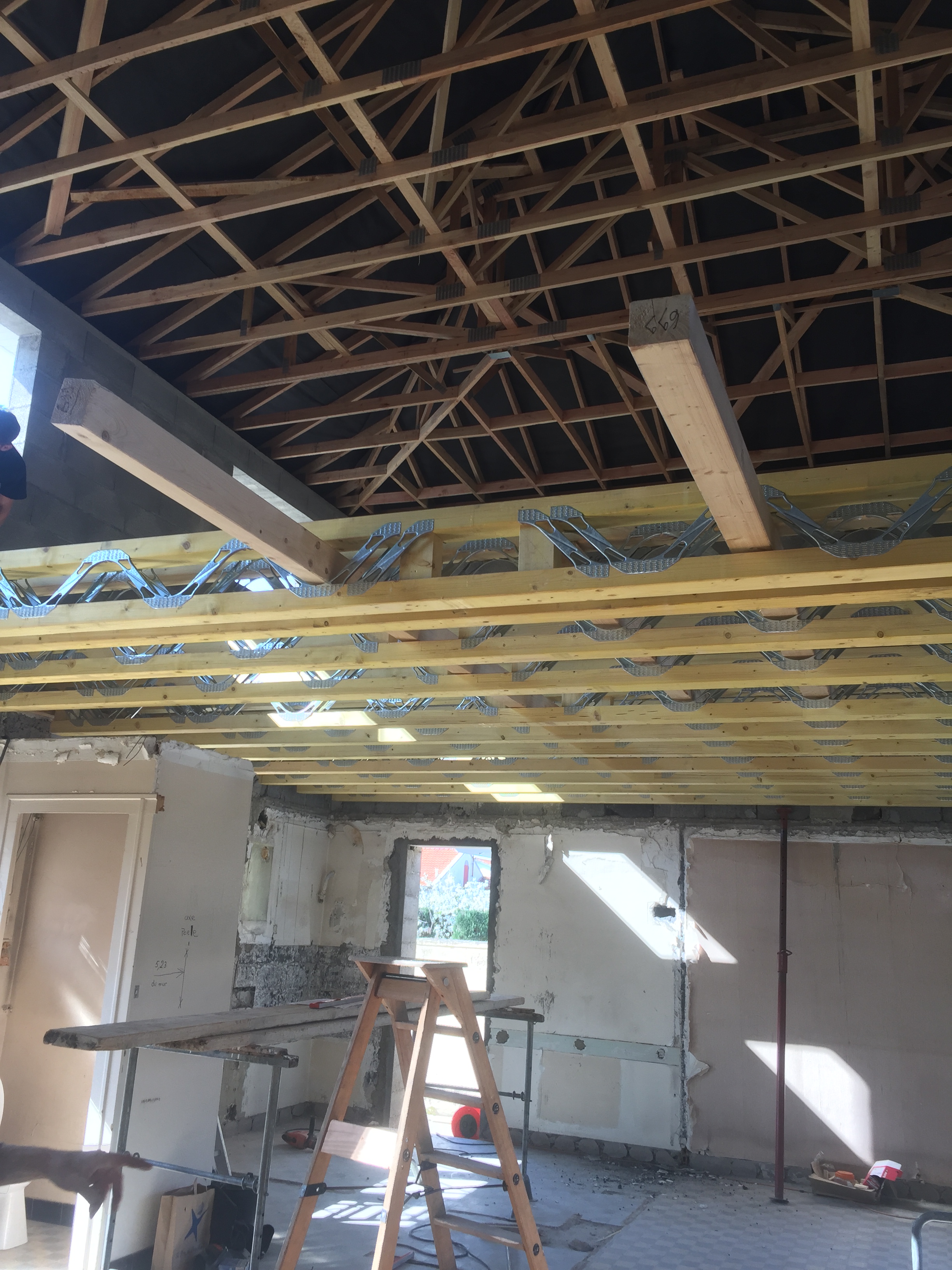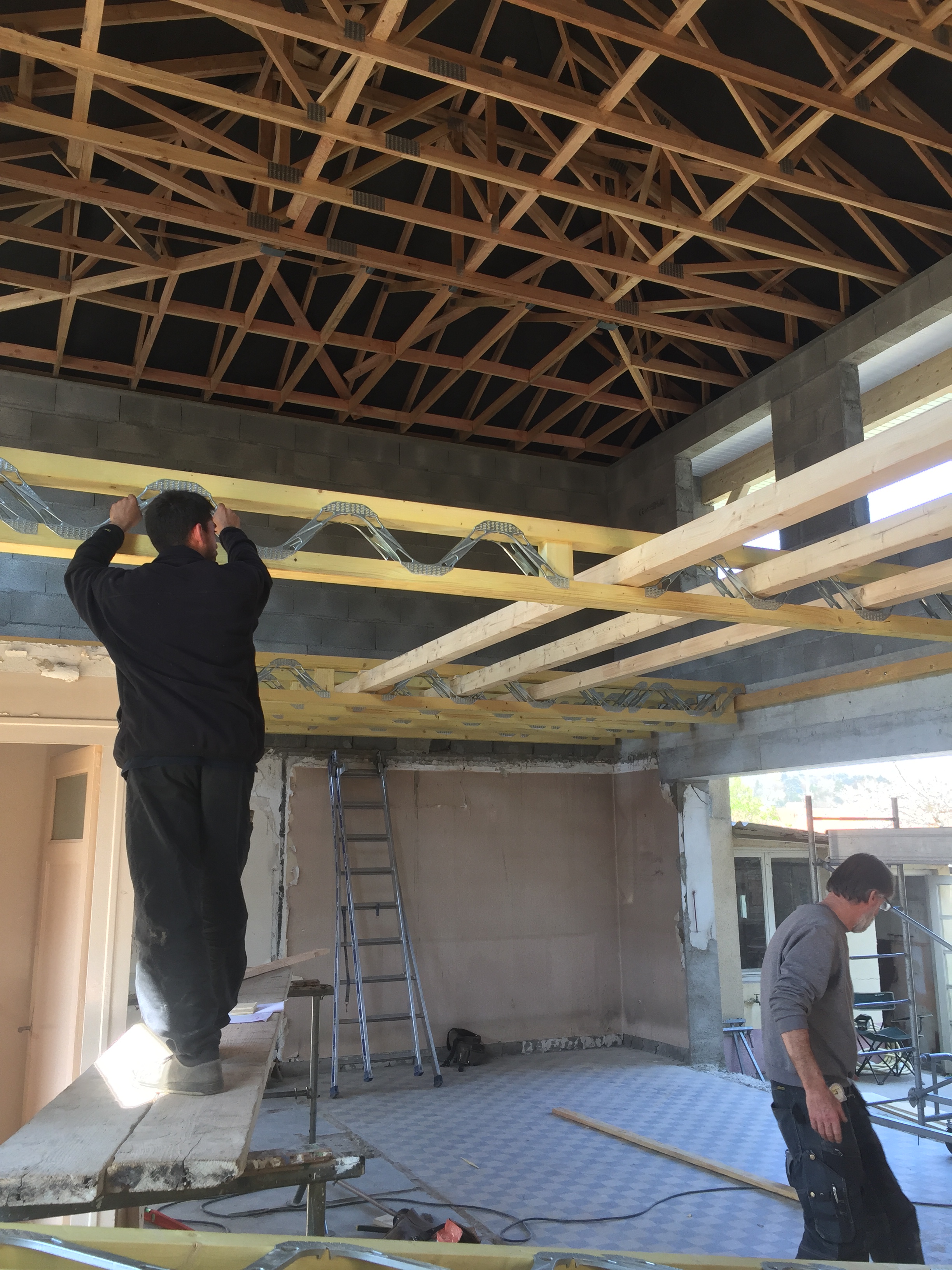 - Création d’un plateau. Nos clients ont souhaité refaire entièrement leur nouvelle maison en prenant en charge tout le second œuvre. Notre intervention a donc permis de créer 58m² de surface supplémentaire, à organiser selon leur gré.